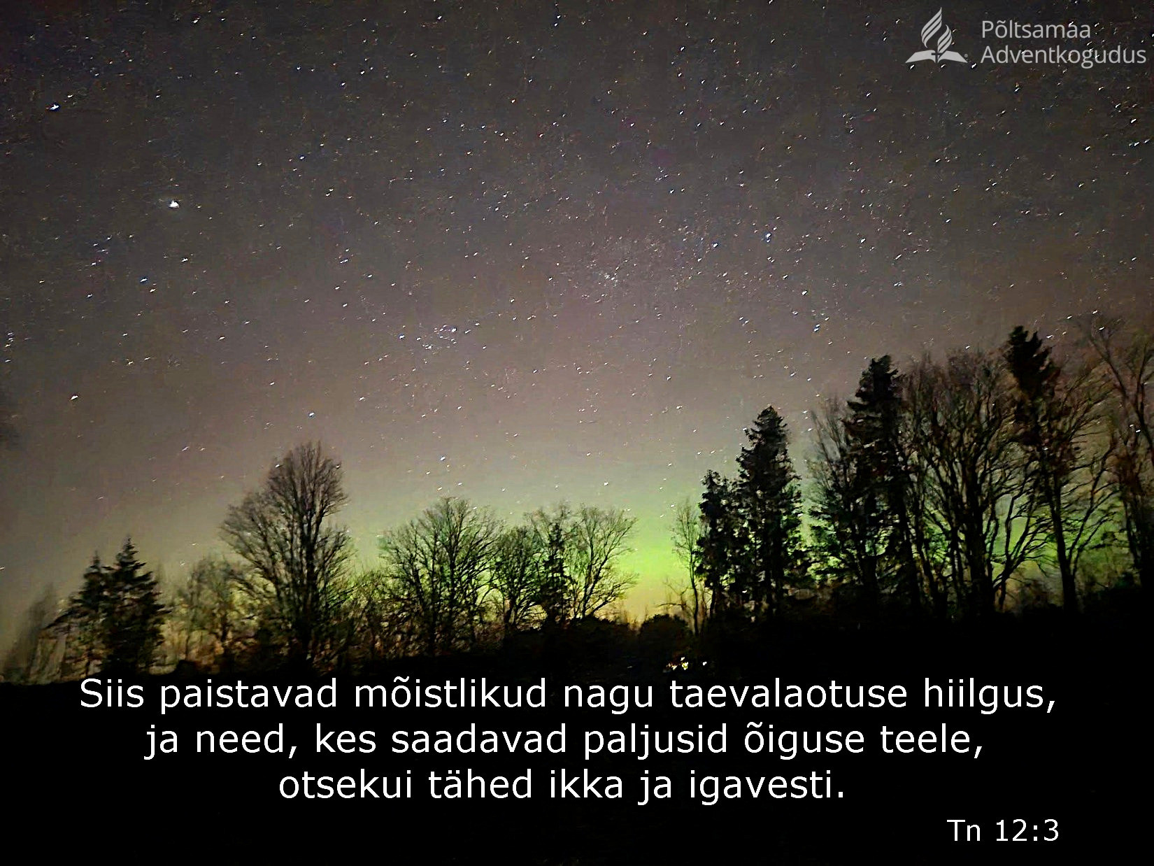 “Siis paistavad mõistlikud nagu taevalaotuse hiilgus, ja need, kes saadavad paljusid õiguse teele, otsekui tähed ikka ja igavesti.” (Tn 12:3)