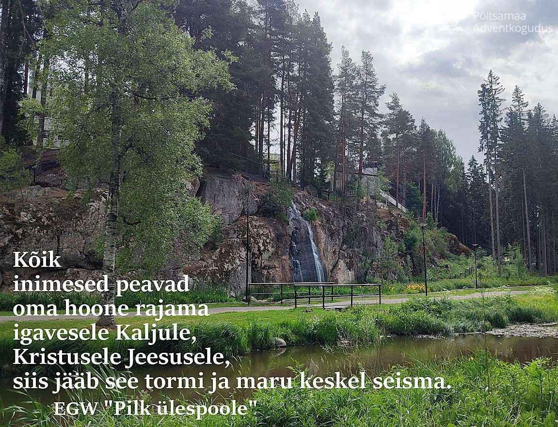 21. okt. 2025 Kõik inimesed peavad oma hoone rajama igavesele Kaljule, Kristusele Jeesusele, siis jääb see tormi ja maru keskel seisma. EGW “Pilk ülespoole” Share This Tweet Share Share Email Veel lugemist Piiblisalm "Kitsas on värav ja ahtake on tee, mis viib ellu, ja pisut on neid, kes selle leiavad." (Mt 7:14) Elav usk Maa peal ei ole konfliktidest ja kiusatustest pääsu, kuid igas tormis on meil kindel varjupaik. Jeesus on öelnud: "See ongi võit, mis on võitnud ära maailma - meie usk." (1Jh… Head mõtted Igal Jumala riigi alamal on oluline olla kuulekas Issanda seadusele, et Tema igavesel aul võiks olla täiuslik alus. EGW "Jeesuse sarnaseks"