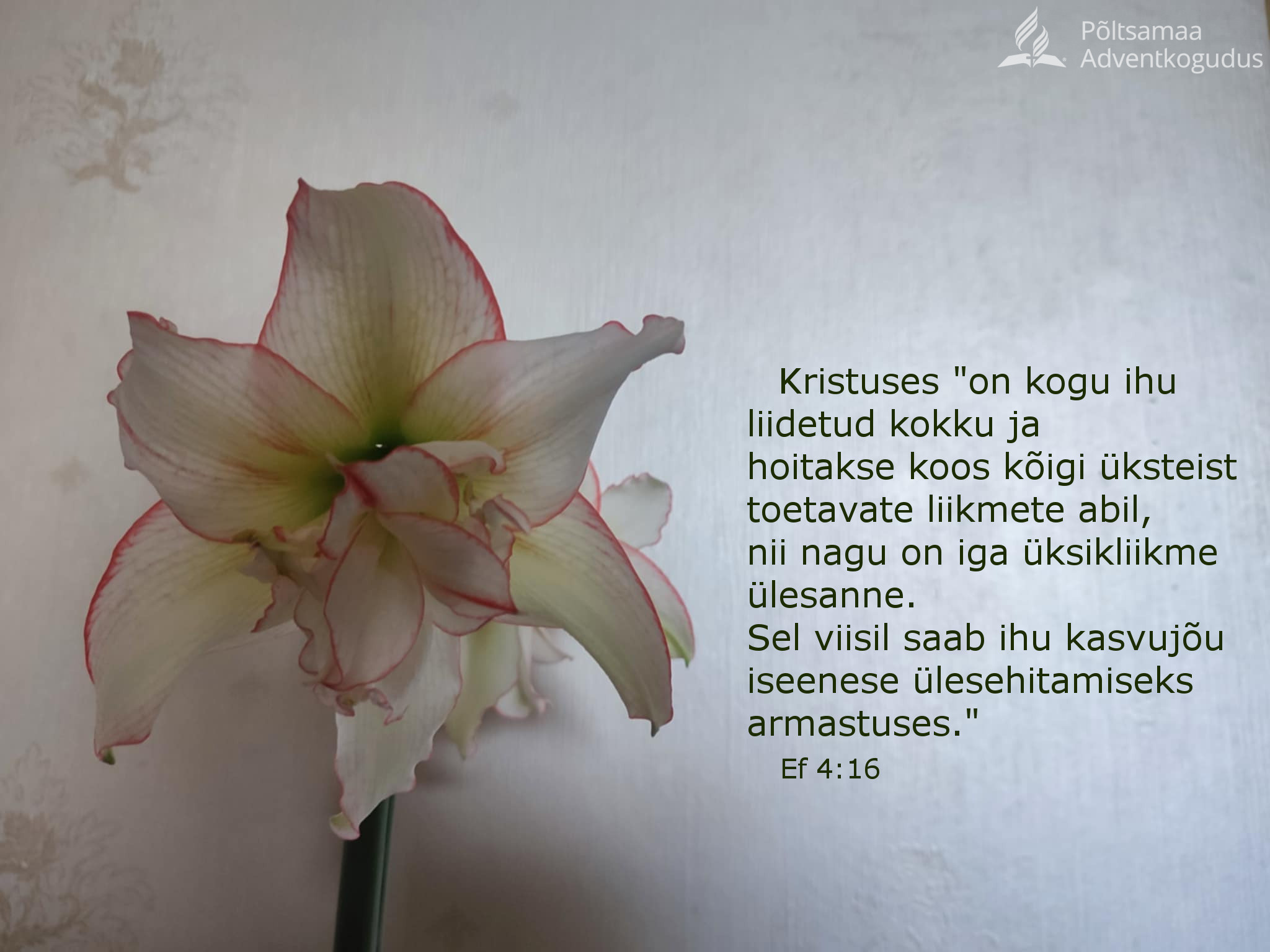 Kristuses “on kogu ihu liidetud kokku ja hoitakse koos kõigi üksteist toetavate liikmete abil, nii nagu on iga üksikliikme ülesanne. Sel viisil saab ihu kasvujõu iseenese ülesehitamiseks armastuses.” (Ef 4:16)
