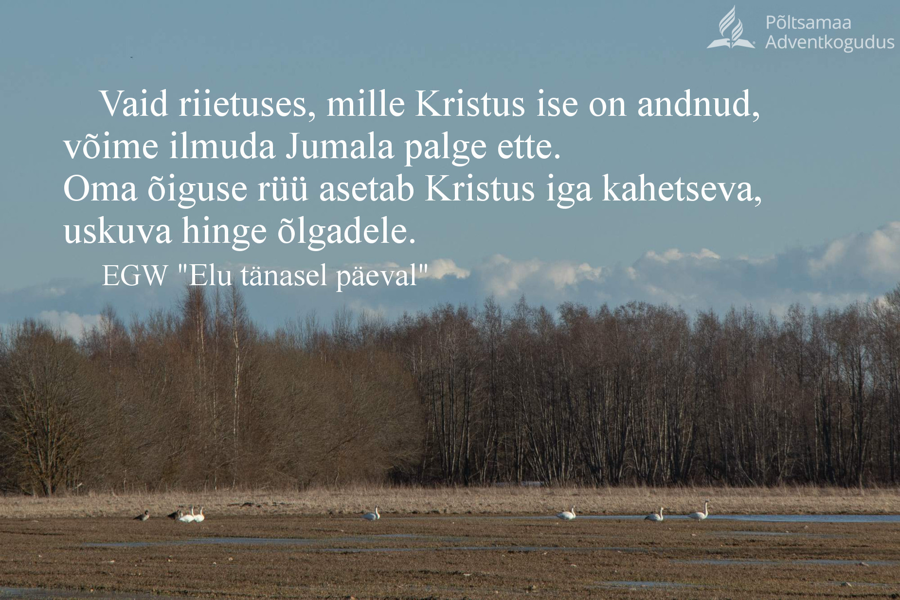 Vaid riietuses, mille Kristus ise on andnud, võime ilmuda Jumala palge ette. Oma õiguse rüü asetab Kristus iga kahetseva, uskuva hinge õlgadele. EGW “Elu tänasel päeval”