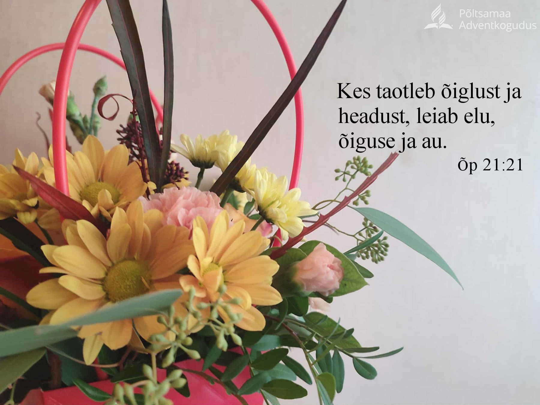 “Kes taotleb õiglust ja headust, leiab elu, õiguse ja au.” (Õp 21:21)