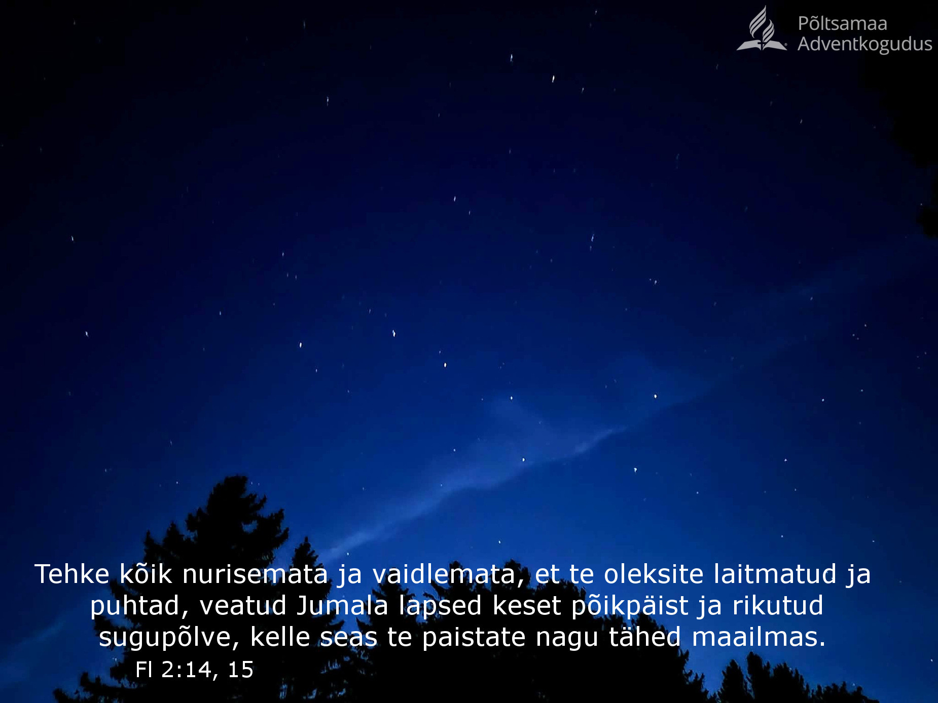 “Tehke kõik nurisemata ja vaidlemata, et te oleksite laitmatud ja puhtad, veatud Jumala lapsed keset põikpäist ja rikutud sugupõlve, kelle seas te paistate nagu tähed maailmas.” (Fl 2:14, 15)