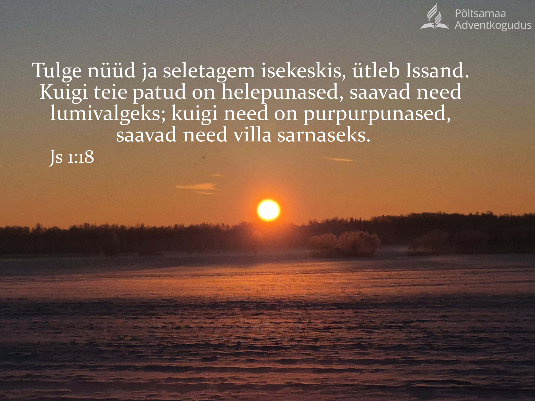 “Tulge nüüd ja seletagem isekeskis, ütleb Issand. Kuigi teie patud on helepunased, saavad need lumivalgeks; kuigi need on purpurpunased, saavad need villa sarnaseks.” (Js 1:18)