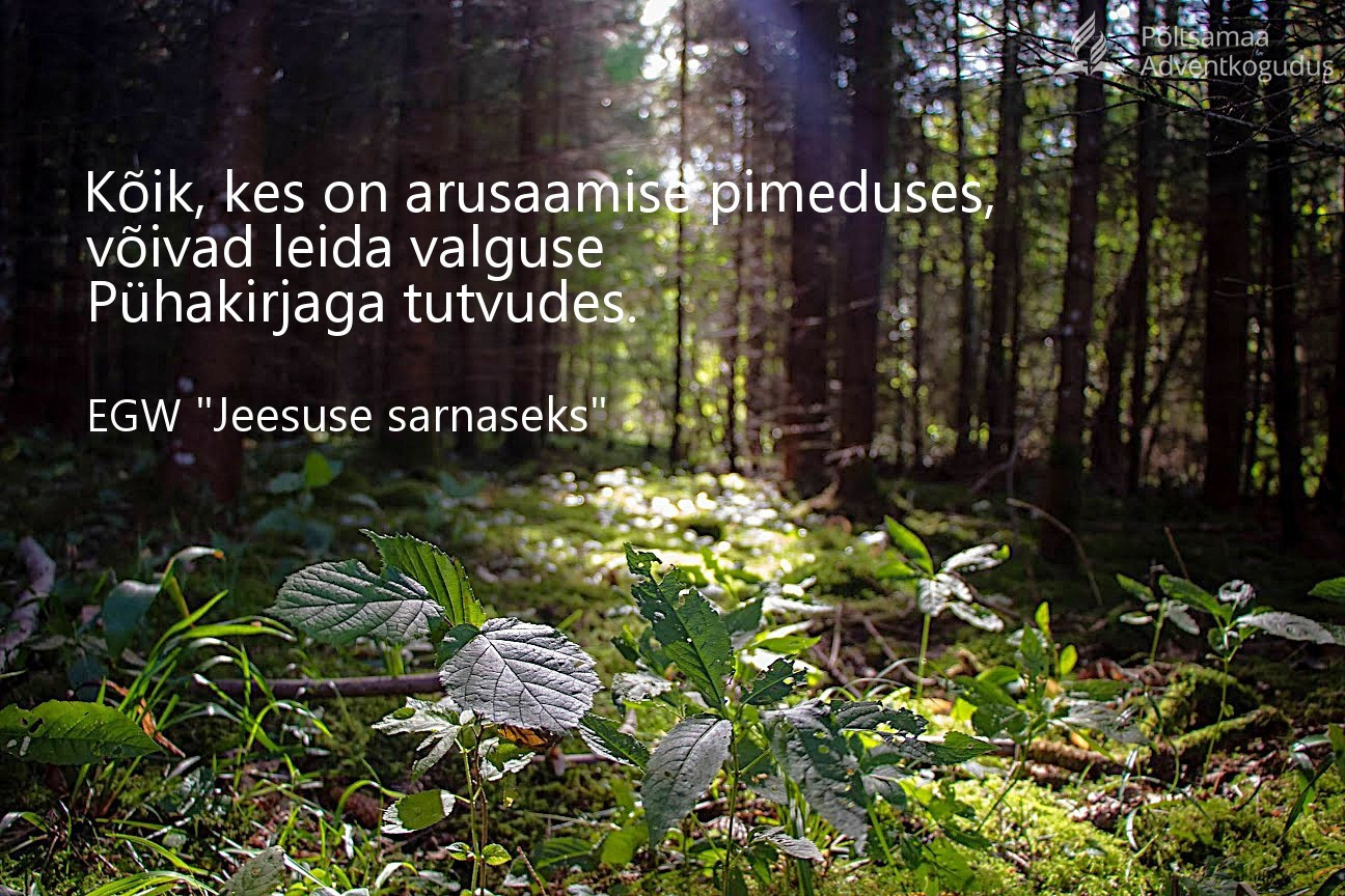 Kõik, kes on arusaamise pimeduses, võivad leida valguse Pühakirjaga tutvudes. EGW “Jeesuse sarnaseks”