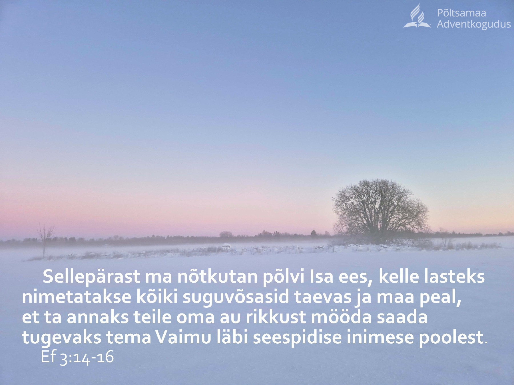 “Sellepärast ma nõtkutan põlvi Isa ees, kelle lasteks nimetatakse kõiki suguvõsasid taevas ja maa peal, et ta annaks teile oma au rikkust mööda saada tugevaks tema Vaimu läbi seespidise inimese poolest.” (Ef 3:14-16)