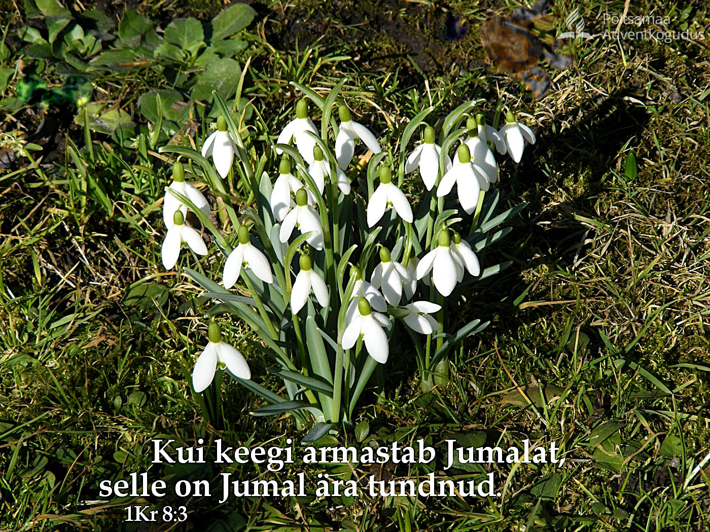 15. märts 2026 “Kui keegi armastab Jumalat, selle on Jumal ära tundnud.” (1Kr 8:3) Share This Tweet Share Share Email Veel lugemist Jumala tundmine Jumala tundmine on sama kõrge nagu taevas ja avar nagu universum. Pole midagi õilistavamat ja elustavamat kui meie igavese eluga seotud oluliste teemade uurimine. ... Pühakirja uurimise teel saadud haridus… Head mõtted Kui soovid kogeda õnne ja rahu kõiges, mida teed, siis pead tegema kõike lähtuvalt Jumala aust. EGW "Elu tänasel päeval" Piiblisalm "Üle kõige selle olgu armastus - see on täiuslik side!" (Kl 3:14)